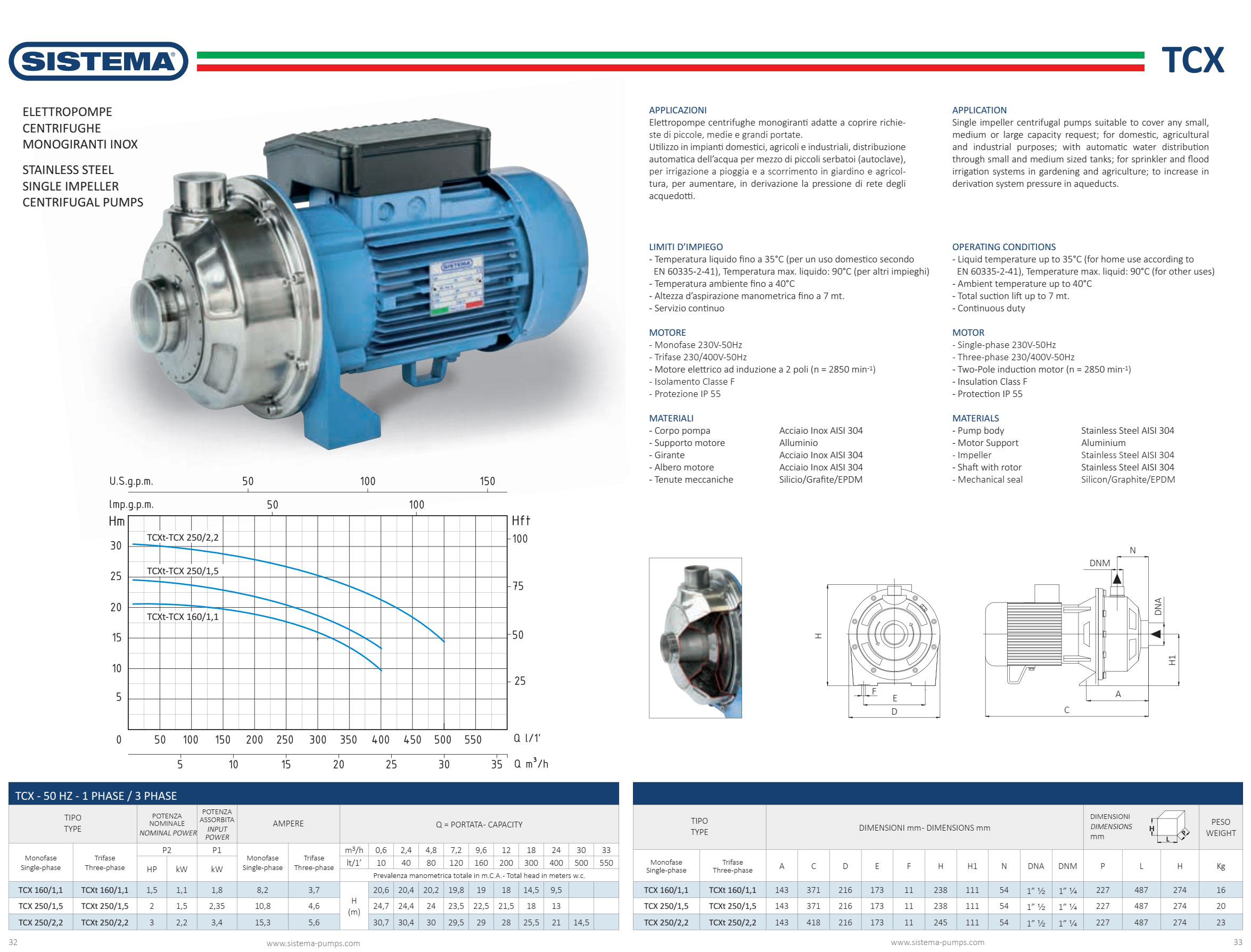 مشخصات فنی پمپ آب بشقابی سیستما مدل TCX 250/2.2