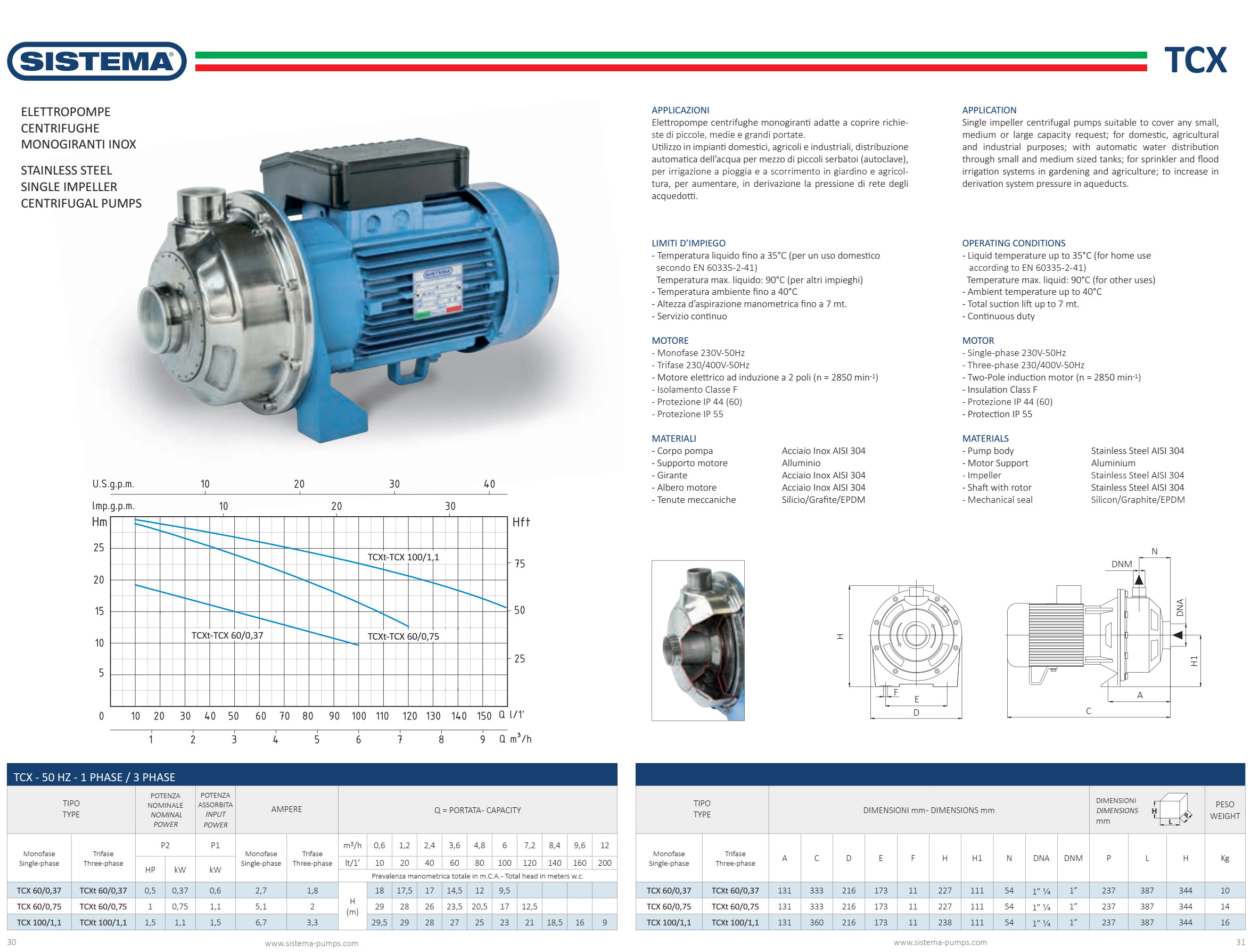 مشخصات فنی پمپ آب بشقابی سیستما مدل TCXt 60/0.75
